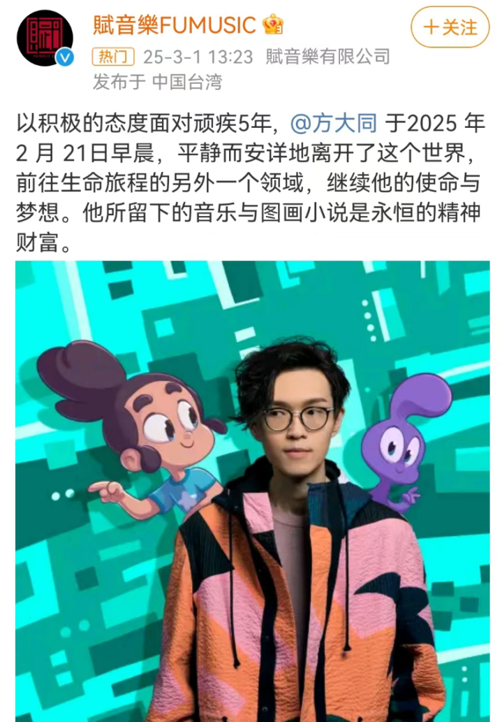 然而这不是假消息,方大同真的离开了我们。